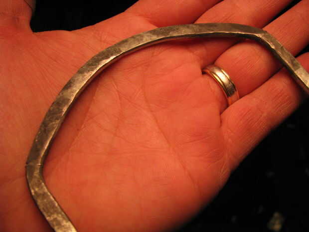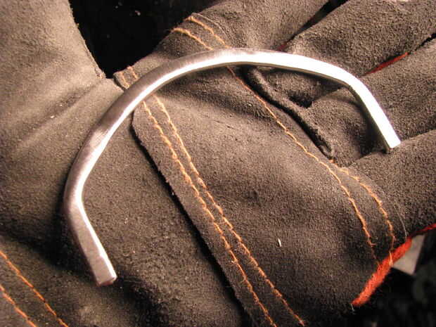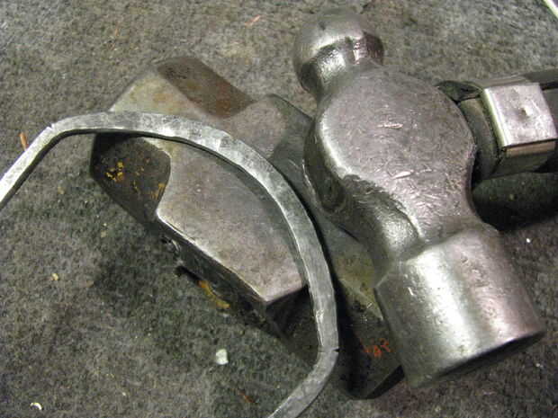 Martillo el cable plano. Tenga en cuenta si usted martilla el interior de la curva que el arco se expandirá. Si usted martilla el exterior del alambre se cierra el arco. Como usted martilla, compruebe que el arca adapta a la parte posterior de la hebilla.