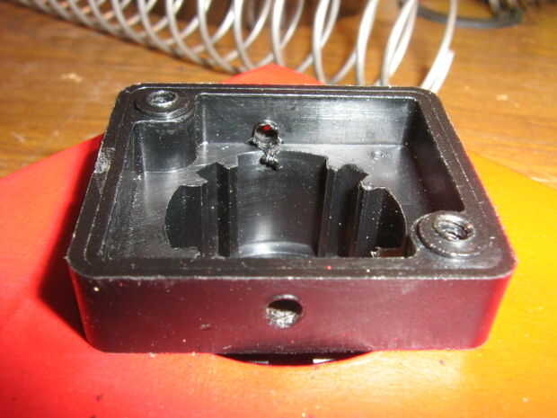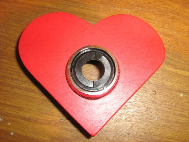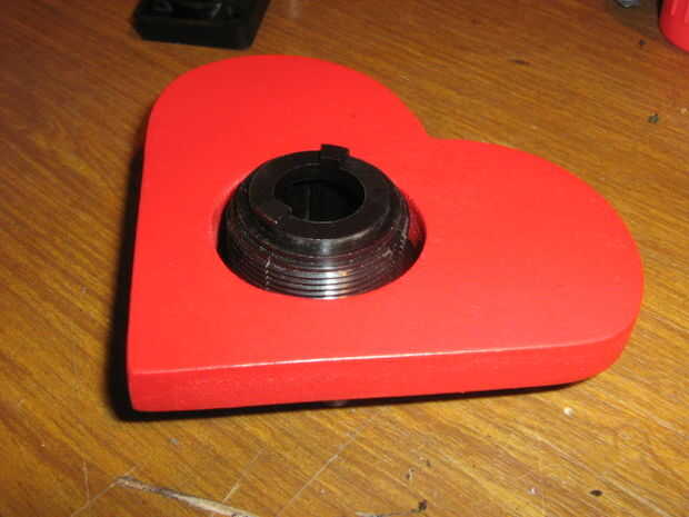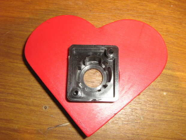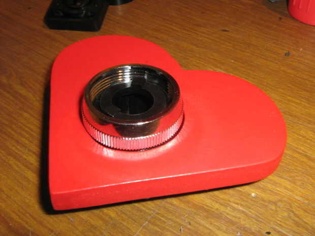 El corazón tenía un agujero en el centro, así que desmontado el interruptor industrial y lo instalo. Es la cubierta para el LED y se unirá el resorte en la parte posterior.