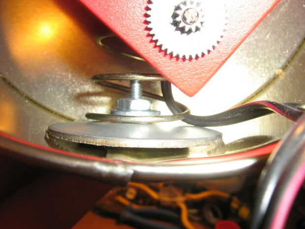 Fije el resorte a las cookies puede. Utilice las tuercas, pernos y algunos metálicos discos.