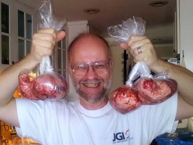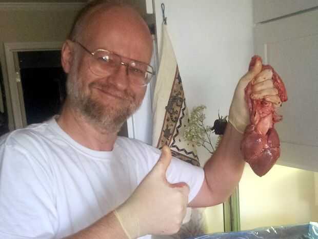 Desafortunadamente, cuando usted está tratando de conseguir un corazón único de un comerciante... eres no es exactamente una prioridad para ellos. Accedieron a hacernos algunos bio-corazones, pero sólo si ordena por lo menos cinco a la vez. Así que después de conseguir el runaround y perder un par de semanas más de nuestro tiempo, finalmente recibimos una caja de cartón sorprendentemente limpia, que contiene cinco corazones de cerdo muy crudo y muy sangriento!