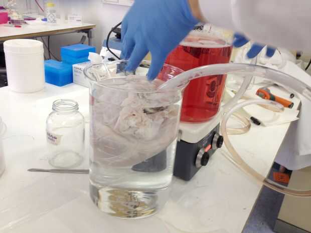 Son digestores bastante suaves, pero si el corazón se queda en ellos para demasiado largo, el andamiaje de colágeno también puede ser degradado. El protocolo de la Jove video recomienda 3 horas de perfusión de tripsina y probablemente no debería salir más largo que eso.