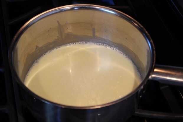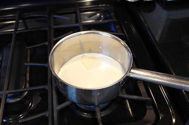 En una olla pequeña, calentar la crema de leche y la mantequilla hasta que se derrita la mantequilla y crema a hervir ligeramente. Vaya directamente al paso siguiente: