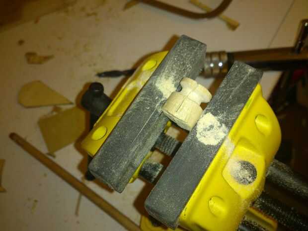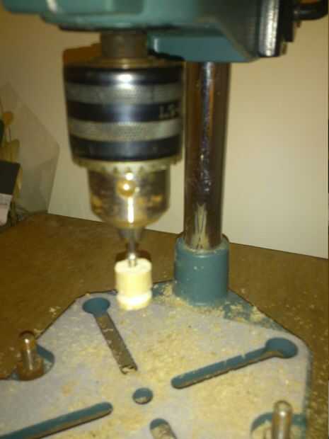 Marqué a donde quería delgada hacia fuera el pivote, y a él, con la sierra, lija, varios accesorios de la dremel, nada parece ser particularmente eficaz o precisa. Entonces tuve una idea genial, pude utilizar mi taladro como un torno! este tipo de trabajo, pero no sentía particularmente inteligente o seguro, y no lo recomiendo. Para empezar mi drill es un taladro normal en un soporte de taladro, que es tipo de tambaleante y no en primer lugar, así que ahora tengo un taladro pretendiendo ser una prensa del taladro haciéndose pasar por un torno, y que he no utilizado nunca un torno ni tengo mucha idea de cómo usar uno. De todas formas consiguió el trabajo hecho en este momento.