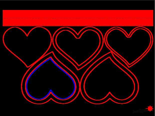 Hay 2 diferentes colores en el archivo. Las líneas azules se piensan para ser un corte de baja potencia y se utilizan como directrices para mostrarle cómo unir las piezas. Las líneas rojas son cortes completo y darán todas las piezas.