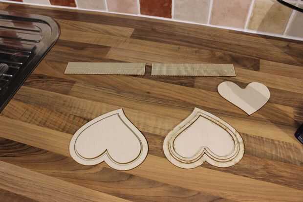 Lo primero es crear la base de la caja, tome la parte superior izquierda corazón y coloque en el corazón izquierdo inferior. Hay un esquema de esta parte para mostrar exactamente donde pegar la forma más pequeña.