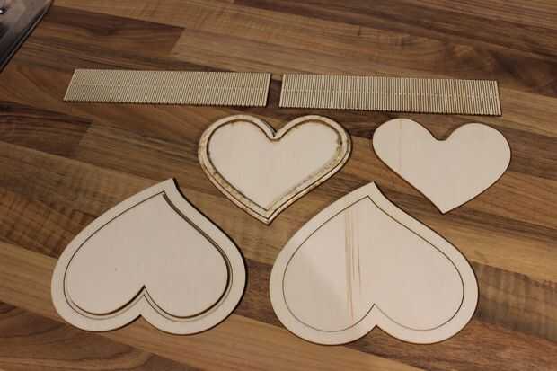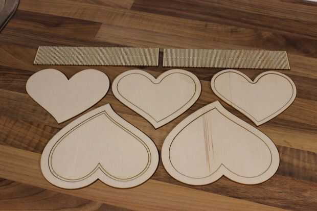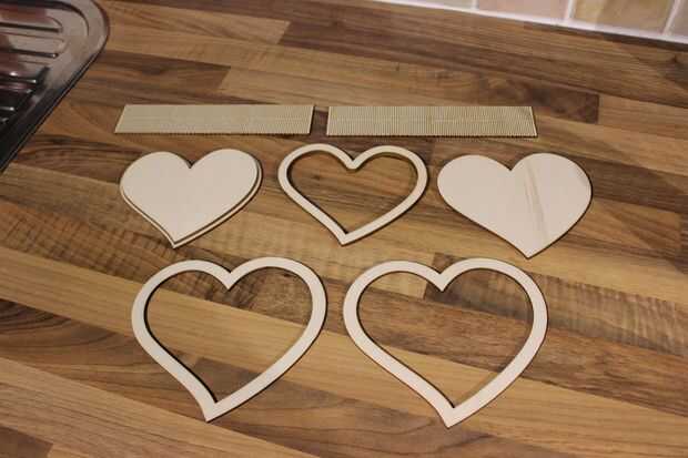 Una vez que el pegamento ha fijado debe terminar para arriba con 3 pedazos. La base plana de la caja, el anillo superior de la caja y la tapa de la caja. También usted terminará para arriba con 2 corazón en forma de anillos que son lo suficientemente grandes como para dar la vuelta a la caja, estos se utilizarán en el siguiente paso.