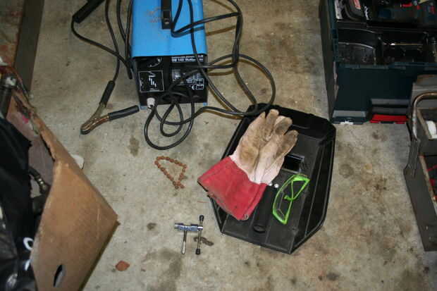 (alicates, martillo: utilizado para "montar la cadena", también se puede utilizar la cadena para escoplear)