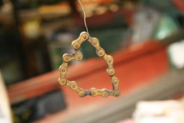 este colgante en forma de corazón primero comenzó como un dólar de plata de 1963 canadiense. Se trataba de plata 80-20 de cobre. La forma áspera se hizo utilizando la técnica de cera perdida y después de horas de presentación, fue terminado de lijar