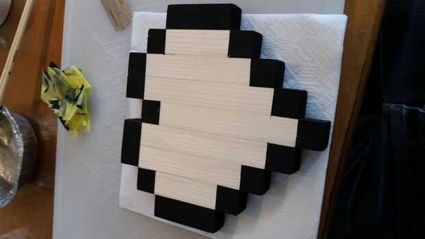 Desafortunadamente no tome fotos cuando reuní el corazón. La imagen que se ve es el resultado final (con la primera pintura en él)