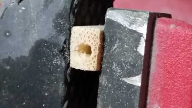 También tomó un trozo de diente de madera y perforó un agujero en él (esto será claro en el siguiente paso)
