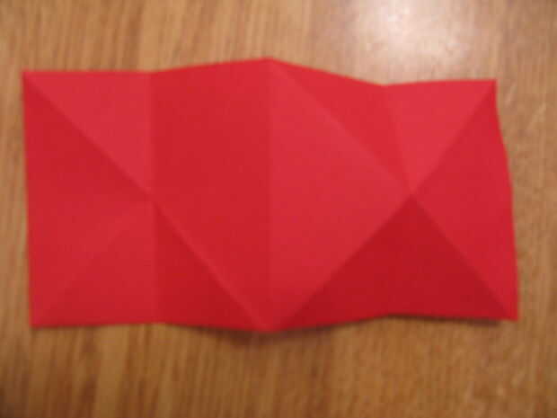 Doblando un cuadrado a la vez, doblar diagonalmente (para los pliegues formen una X) y doblar hacia atrás para crear una línea que corre por el centro de la X.