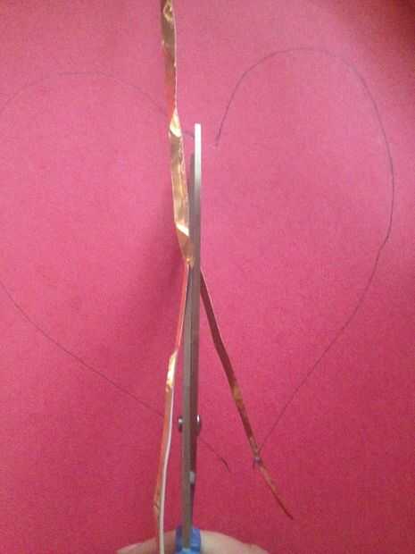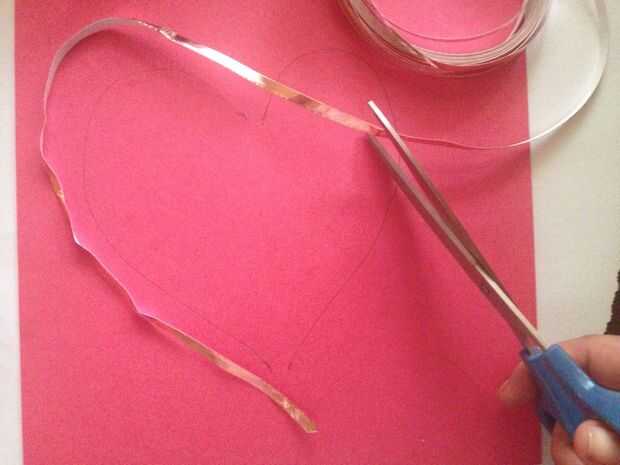 Corte la cinta de cobre por la mitad a lo largo en dos tiras largas. Esto le ayudará a la forma del corazón.