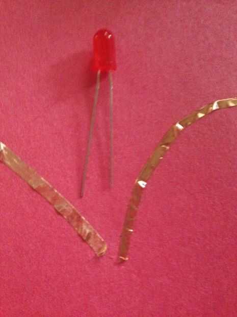 • Doble los cables LED de manera que el positivo es en el lado izquierdo de la parte superior del corazón