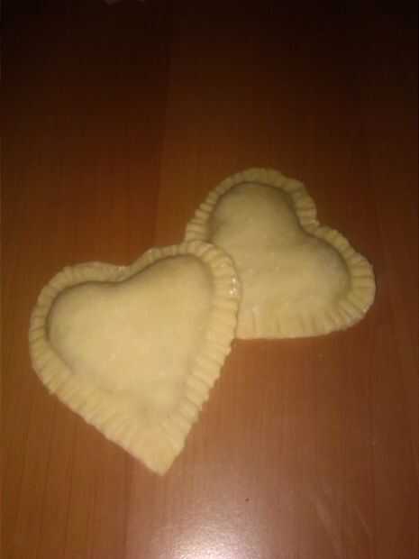 Cierre en sí mismo la tos y cortar en forma de corazón y cerrar los bordes con un tenedor.