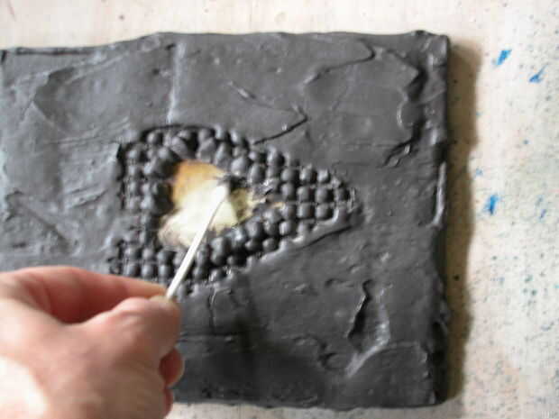 Una vez que la pintura seca lo suficiente para que usted pueda manejar la junta puede raspar o limpiar el exceso de pintura del corazón de aluminio.