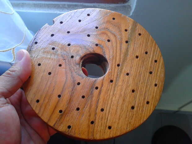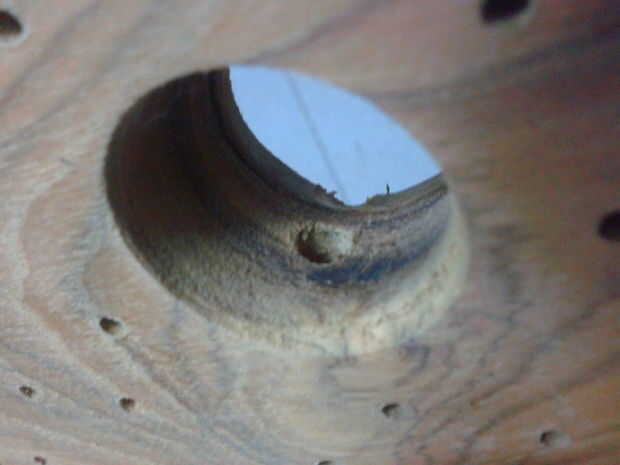 ADVERTENCIA: Hacer esto con cuidado porque la madera es circular y puede obtener se deslizó lejos cuando taladra y puede lesionar la mano, utilice una abrazadera en su lugar para sostener la madera.