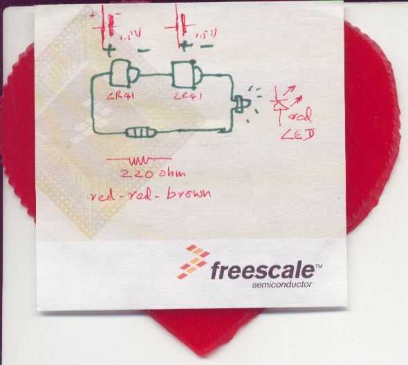Con ninguna resistencia, el LED es más brillante, pero la vida es corta. Seleccioné una resistencia de 220 ohm como un compromiso entre la duración razonable de la batería pequeña y brillo visible.