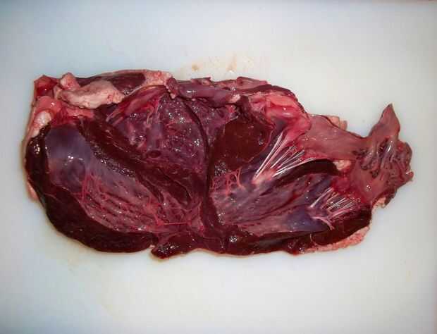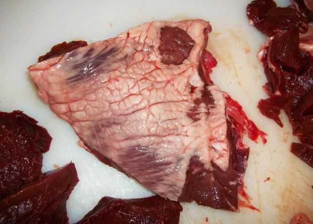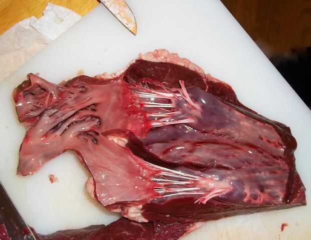 - Usted verá enseguida querrá cortar lejos en el interior del corazón. La carne tiene un color rico y rojo típico de cualquier corte de carne de res y los tendones y el interior del tejido conectivo que conforman el interior superficie del corazón no aceptable texture-wise y que debe recortarse. Tiempo para flexionar tus habilidades de cuchilla.
