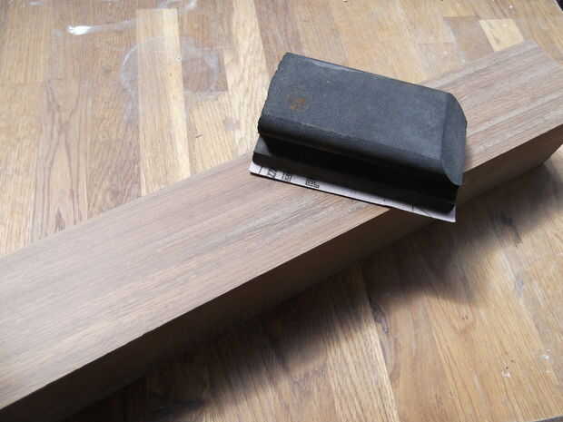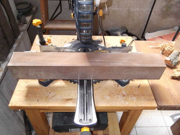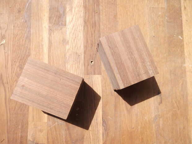 Arena un lado de la viga para obtener una superficie lisa. No hay necesidad de los otros lados de la arena. Corte dos cubos de la viga. Utilice una sierra circular. No te olvides de guantes, gafas protectoras y tapones para los oídos.