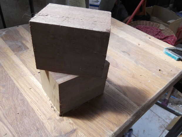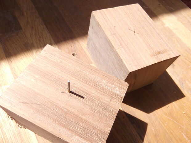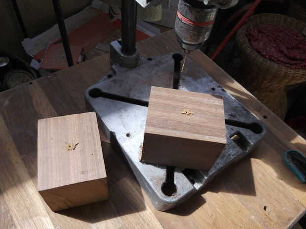 Perfore un agujero en cada cubo - utiliza una broca de 3mm (0,1 pulgada) de diámetro y 1 pulgada de profundidad de había perforado.