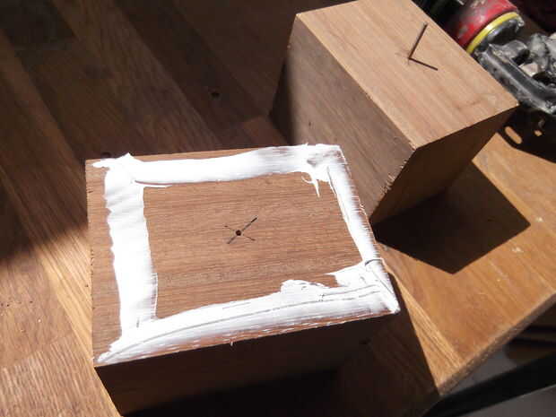 Poner pegamento de madera en las márgenes de la superficie lisa de un cubo.