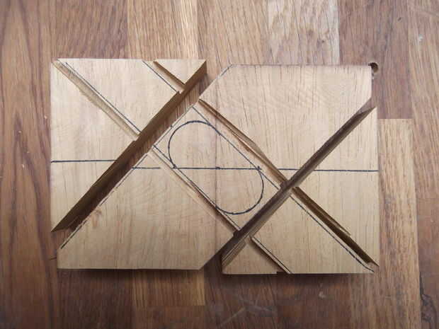 Tomar una barra de aluminio, o lo que sea, de una pulgada de espesor y colocar diagonal entre los dos puntos. Marque las zonas externas.