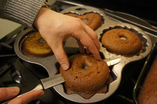 Después de que el pan de la calabaza se haya enfriado, cortar de la parte superior de cada uno. Las tapas tienen una costra agradable - mi familia generalmente peleas sobre quién puede obtener esta pieza!