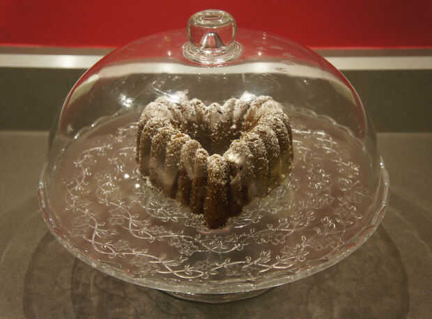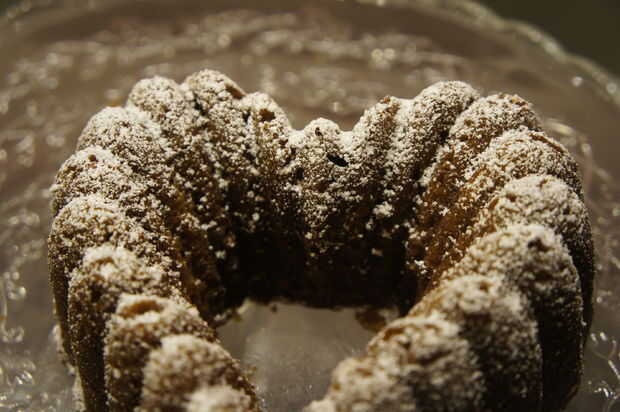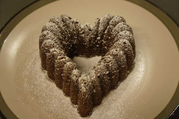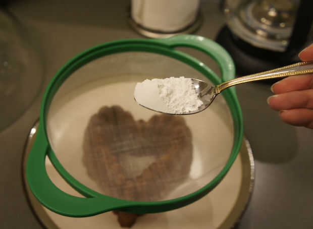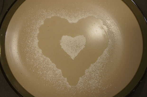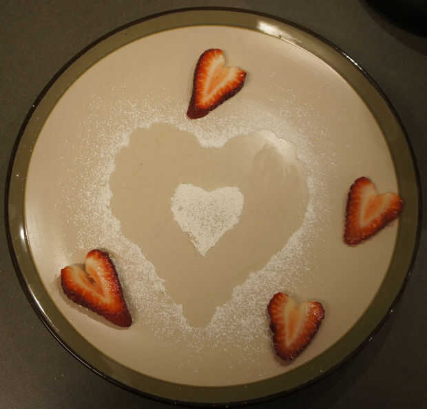Realmente pensé que el azúcar en polvo que caía sobre la placa era hermoso - usted puede ver que arreglé algunos corazones de fresa alrededor de él.