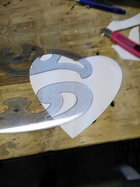 Lo que dice. Dibujar el corazón en un trozo de papel y cortar la forma. Me chupo en el dibujo a mano alzada, usé curvas francesas. Si eres bueno en el dibujo las curvas a mano alzada, no necesita francés curvas.