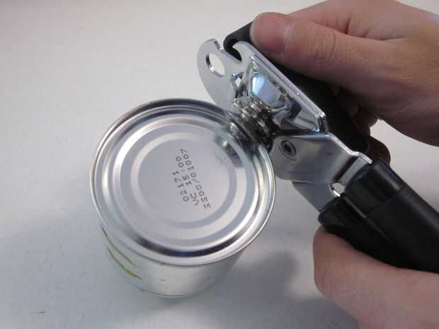 Quitar el fondo de la lata con un abrelatas. Esto dejará un agradable seguro edge-esta es la parte del cortador de la galleta que va pisar con la mano.