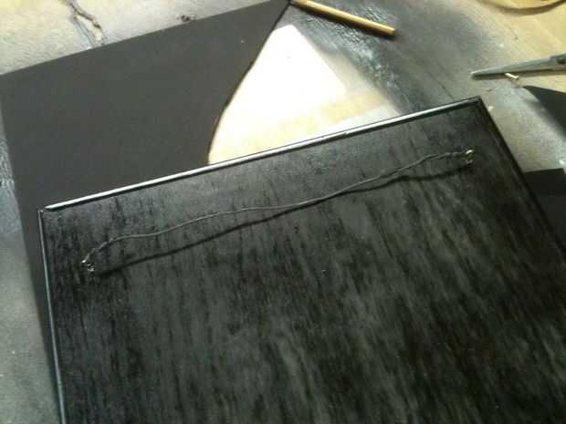 Después de perforar algunos agujeros en el travesaño, os adjunto el corazón a la madera y añadidos algunos ojales y alambre en la parte posterior.
