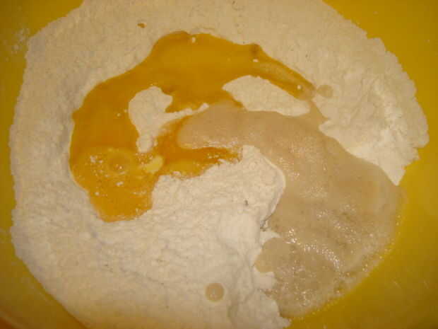 Paso 4: Añadir el huevo, la mantequilla, levadura y agua para la mezcla de harina