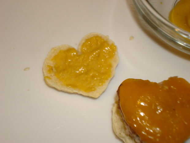 Difundir la salsa de tomate o mostaza en la parte superior del bollo de pan.