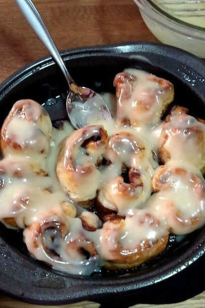 estos fabulosos canela rollos resultó estar delicioso. Hicimos para un proyecto de cocina y todo el mundo estaba pidiendo más. Podría servir este plato con helado como postre o con un viejo vaso de leche para el desayuno. Los rollos de canela calient