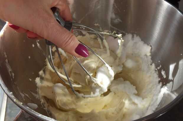 Batir las claras de huevo hasta que esté espesa pero no seca forma de picos.