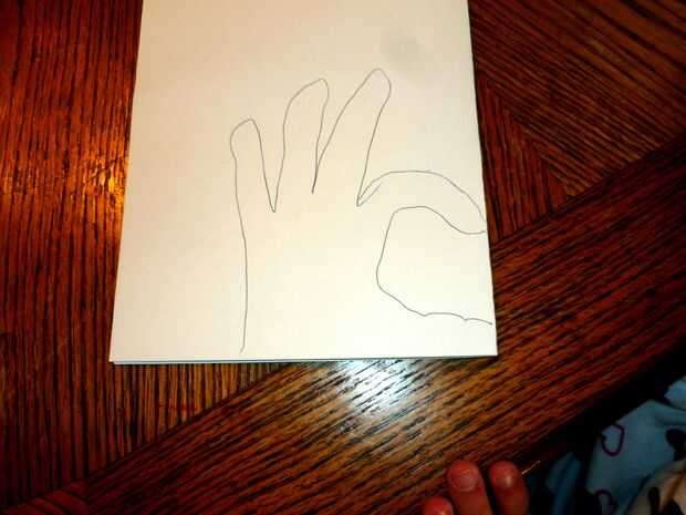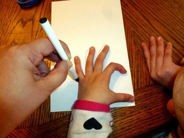 Porque se trata de una plantilla, no dude en utilizar una pluma de tinta para trazar alrededor de los dedos y el pulgar y no se preocupe ensuciar para arriba.