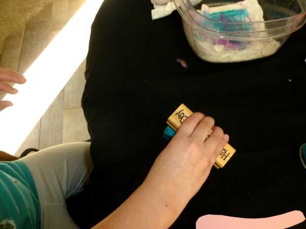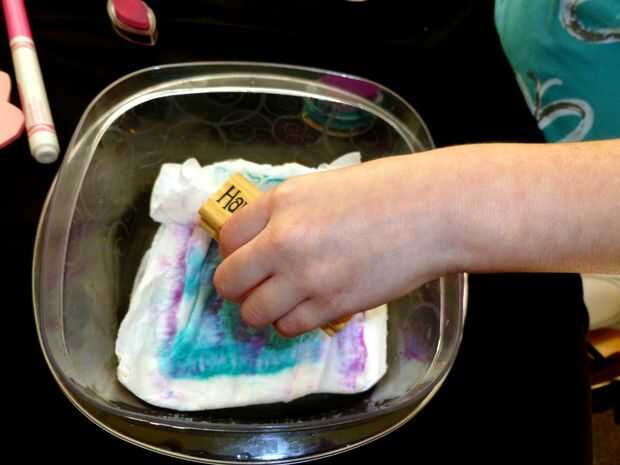Siempre mantengo una toalla de papel húmeda en un recipiente para "limpiar" el sello entre cada estampa, como ella usa diferentes colores de cojines de sello para cada uno de sus quince día de San Valentín.