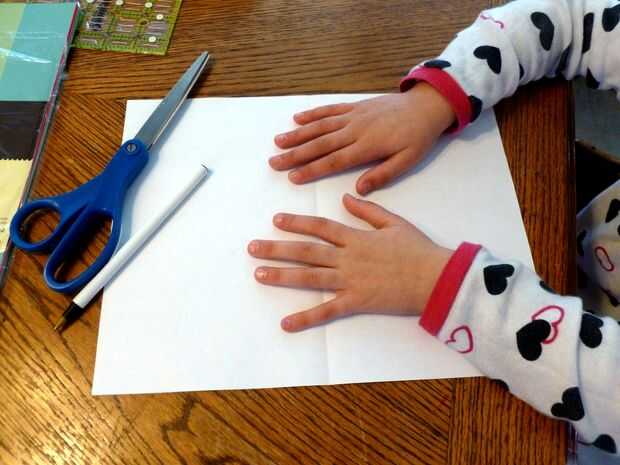 Doblar las formas larga stock de tarjetas solicitadas, ya que probablemente será capaz de encajar dos de estas pequeñas manos en un pedazo de papel.