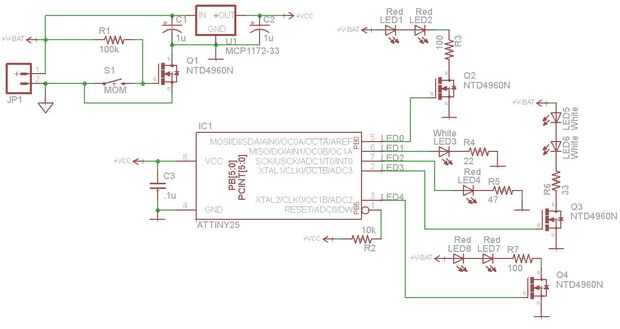 El único inconveniente del diseño es que mientras se presiona el botón, hay flujo de corriente a través de la resistencia de 100 k, pero esto sólo crea sobre .09mA * dar o tomar debido a las fluctuaciones en el voltaje de la batería) por lo que no es tan malo. De hecho, por esta razón dicha semana tire para arriba del resistor se utiliza para este trabajo.