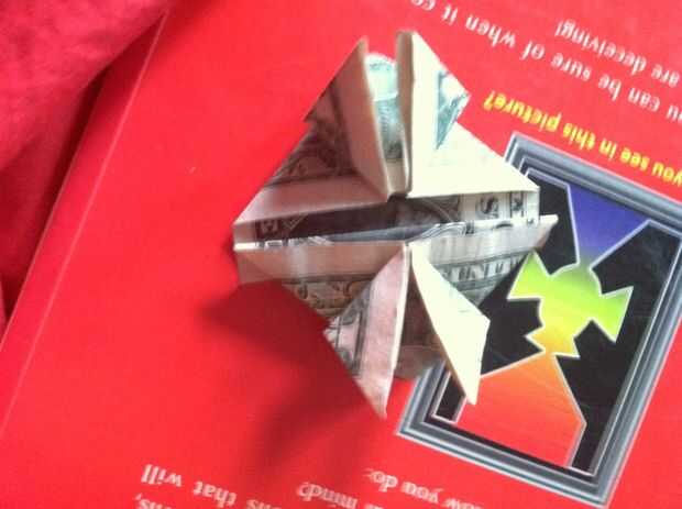 Corazón en Origami con un dólar y un cuarto (7 / 15 paso)