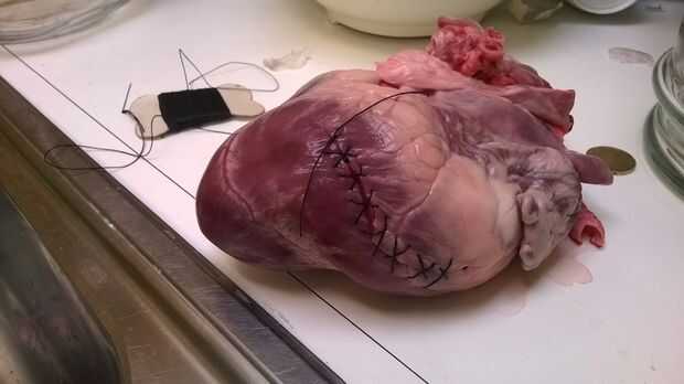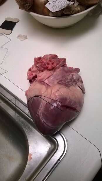En mi país el inspector está obligado a dar el corazón un poco cortado porque el corazón es un buen indicador de la salud del cerdo y por lo tanto de carne de cerdo. Puede elegir coserlo cerrar o dejar abiertos.