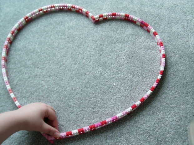 Ahora tire de las dos tiras hacia usted para que ellos se reunirán de nuevo en un punto en la parte inferior. El ángulo de 90 grados es el punto donde los dos arcos principales de un corazón cumplir y tirar de las tiras hacia ti crea estos arcos.
