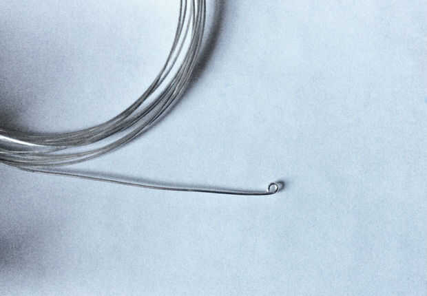 Haga un bucle en el extremo de su 20 calibrador de alambre de sus alicates de punta. Entonces forma el alambre alrededor de un lápiz para obtener la mitad de un corazón.