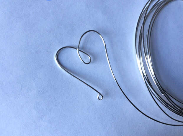 Forma de alambre alrededor de la misma pluma que usa en el paso 2 para obtener la otra mitad del corazón. Corte el alambre un poco más largo que el otro lado del corazón.