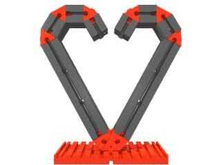 Agregar en orden a cada pila de: un Angular 60 bloque, bloque 15, Angular 60 bloque y bloque 15. Tenga en cuenta que la estructura está viajando hacia la parte inferior del modelo, creando el contorno del corazón.