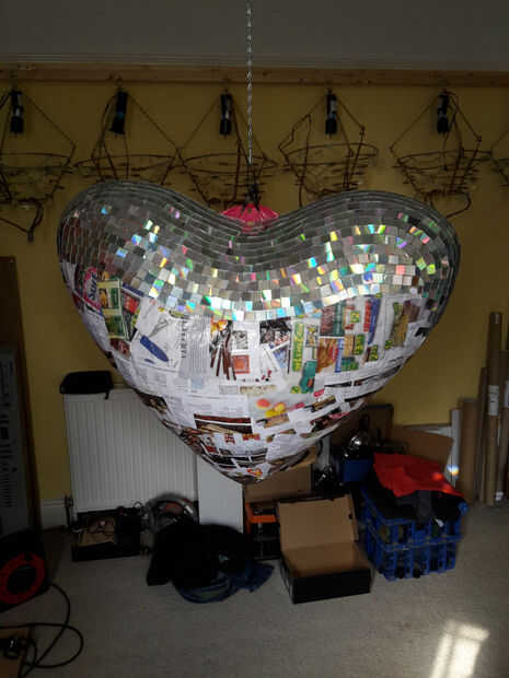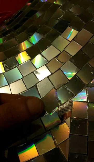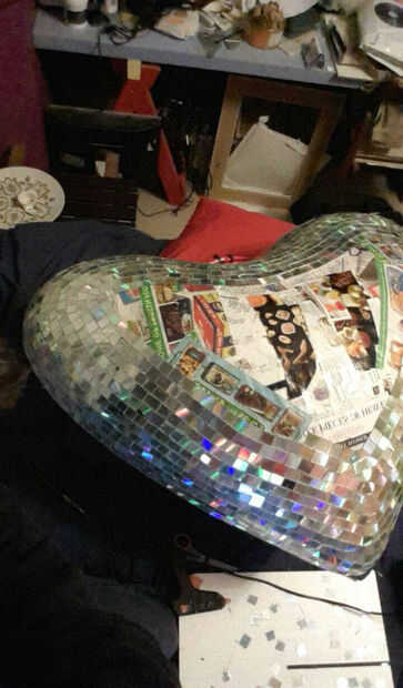 No verdadero secreto o truco para esto, sólo metódicamente pegado miles de pedacitos de espejo al corazón utilizando caliente derretimiento pegamento.