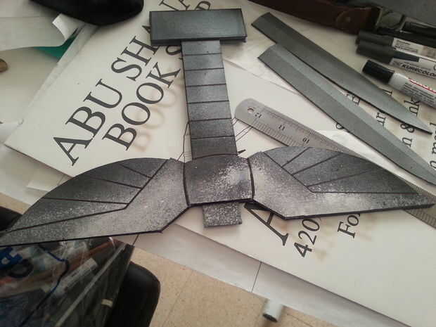 El mango y las alas deben ser más oscuras que la parte inferior de la pieza. Tan use su pintura en aerosol negro para oscurecer las alas y la parte superior del mango y con su pintura en aerosol cromo plata ligero hacer la parte inferior de la pieza más ligera. Esto podría ser un poco difícil de conseguir en los lugares correctos, pero que no es un problema, seguir repitiendo y añadiendo tantas capas como sea necesario hasta obtener el color correcto.