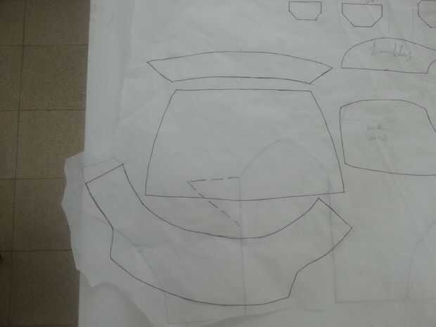Una vez más, poner una hoja de papel manteca en su brazo y traza la forma áspera de cada pieza, basta con obtener la longitud y la anchura, y determinarán la forma como se mueve a lo largo de.