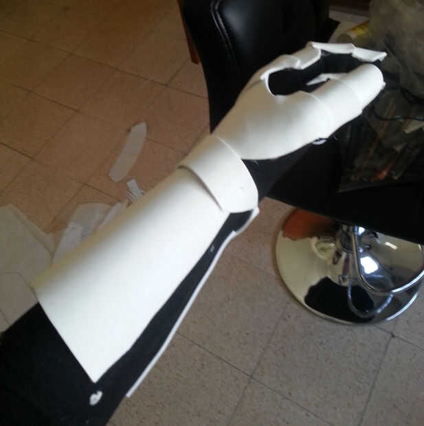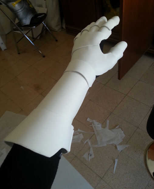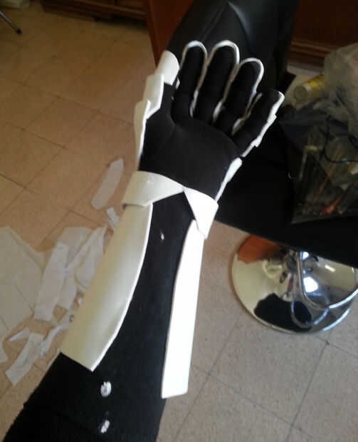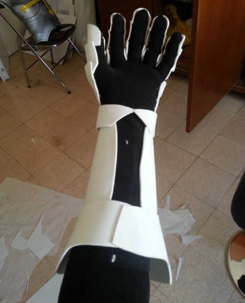 El pequeño debe ir todo alrededor de la muñeca y asegúrese de que está un poco más para que se sienta un poco flojo y no limitar el movimiento de la muñeca. Ahora usted será sólo pegamento en la punta donde ambos extremos se encuentran en el interior del brazo, por encima de la apertura de los Guardabrazos y brazales y en el otro extremo de las diagonales donde se encuentra con el brazal y también en un punto en la parte inferior central. Ya que es más ancha que la muñeca, podrás usar esto fácilmente incluso cuando se cierra todo el camino alrededor, ser suave!