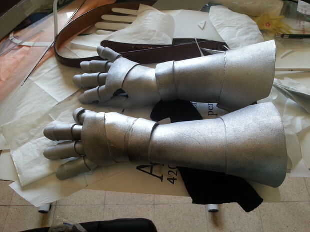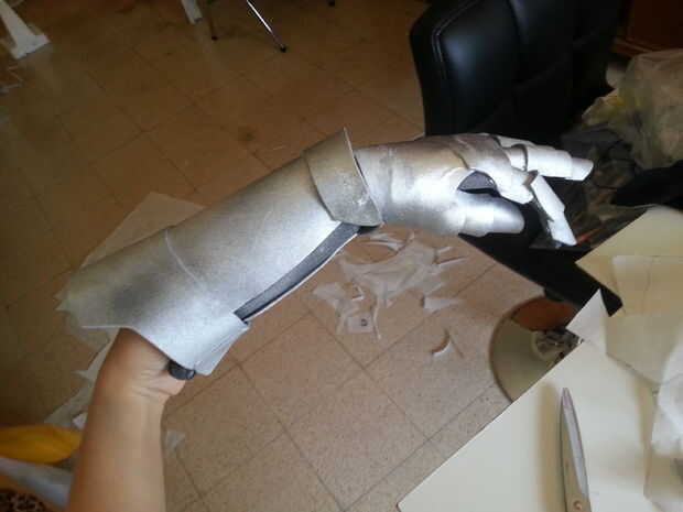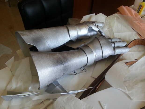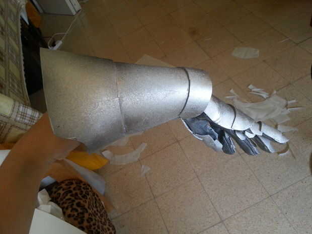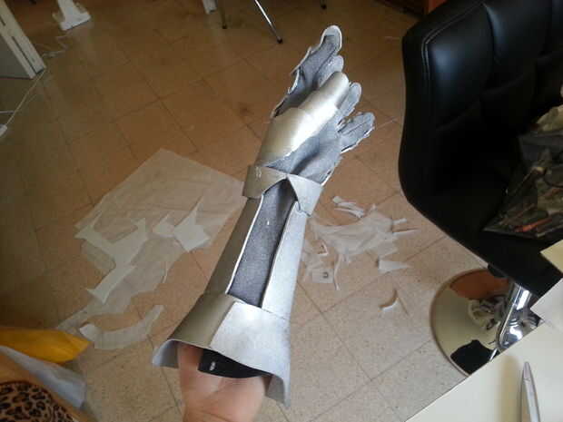 Así que después de poner periódicos por todas partes, siempre los guanteletes y rociarlo a distancia con la pintura plata primero por un lado, esperar un poco hasta que se seque y voltee al otro lado y repetir que hasta ha pintado completamente, también pintó los bits donde el guante se muestra como la palma y el interior de los dedos y la apertura de los Guardabrazos y brazales , que es por qué habría sido mejor utilizar guantes blancos o que mejor todavía, gris o plata. Dicho esto, rocíe pintura solo el material del guante un poco más difícil, pero después de usarlo un par de veces aflojado para arriba y volvió a su estado normal elástico. Después de hacer una capa o dos de plata, incluso más lejos a pie y algunos trazos negros del aerosol, no color negro... Esto sólo le dará la pintura plata algunos puntos oscuros y esto le dan más definición, trate de golpear los puntos de donde crees que debería mostrar más de la sombra como por debajo de los puños, los nudillos... etc. También asegúrese de que llegar a todos esos lugares escondidos entre las piezas de dedos. Trate de doblar los dedos, o incluso usar los guantes como usted pintarlos y moviendo sus dedos, mano y brazo alrededor para ver los lugares donde la pintura podría haber perdido. Que podría ensuciarse las manos un poco, pero es bien vale la pena para conseguir un trabajo hermoso de la pintura al final!